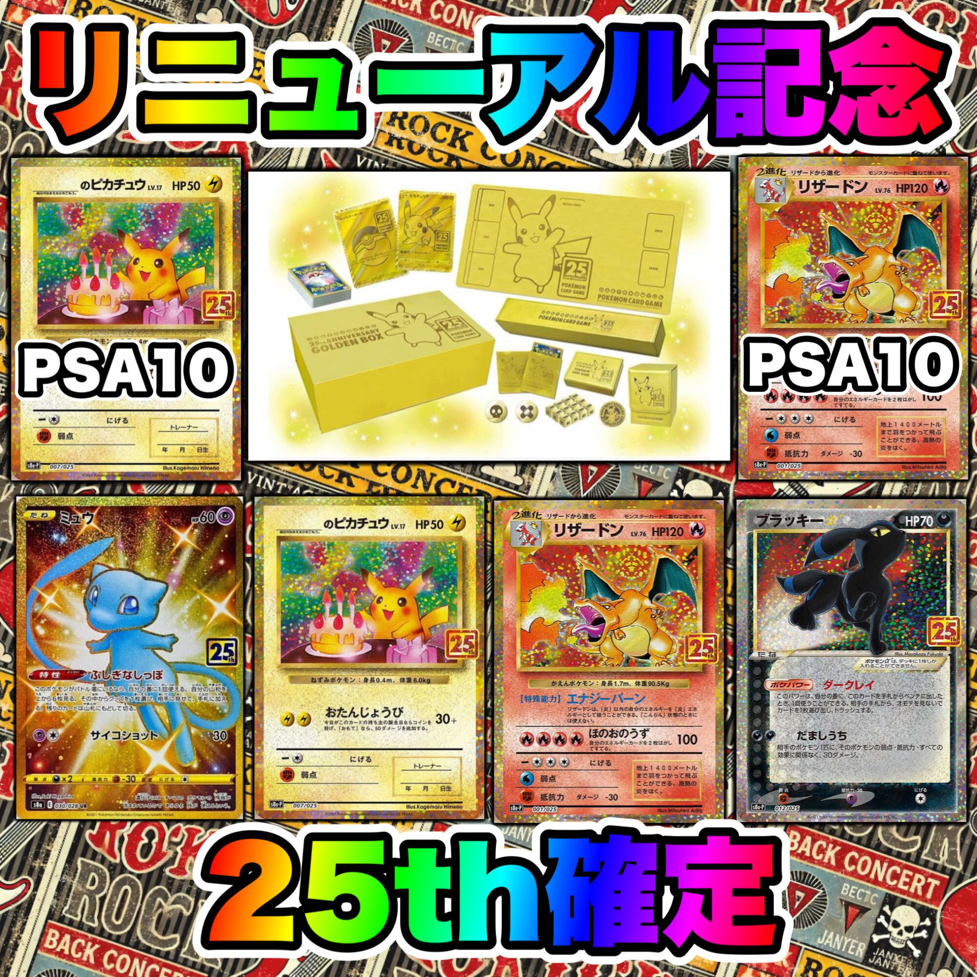 当たり ▶︎ ゴールデンBOX、ピカチュウPSA10、リザードンPSA10、リザードン、ピカチュウ、ブラッキー、ミュウ